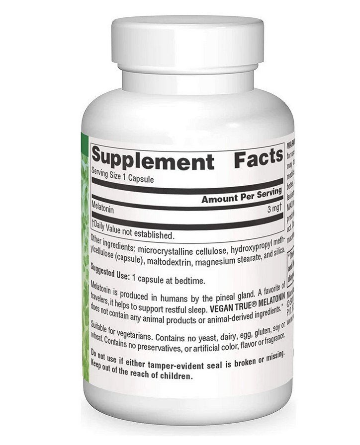 SOURCE NATURALS - Vegan True Melatonin 3 mg - 60 Vegetarian Capsules